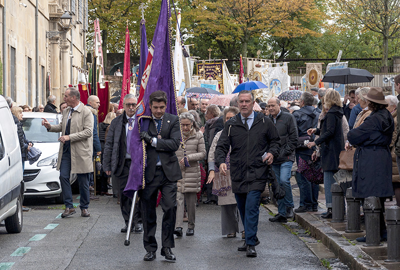 Navarra ha sido tierra de fe profunda y de hermandades vivas. Que este jubileo marque un nuevo impulso: que nuestras cofradías sean “peregrinas de la esperanza”, en la calle, entre la gente, como dice el papa, portadoras de alegría, y de reconciliación.  Y pongamos nuestras hermandades bajo el manto de María, la reina de las cofradías, que nos enseña a permanecer firmes junto a la cruz y a esperar siempre la resurrección. Que este jubileo renueve nuestras hermandades y cofradías y derrame sobre ellas un torrente de esperanza, especialmente para los pobres y necesitados.
