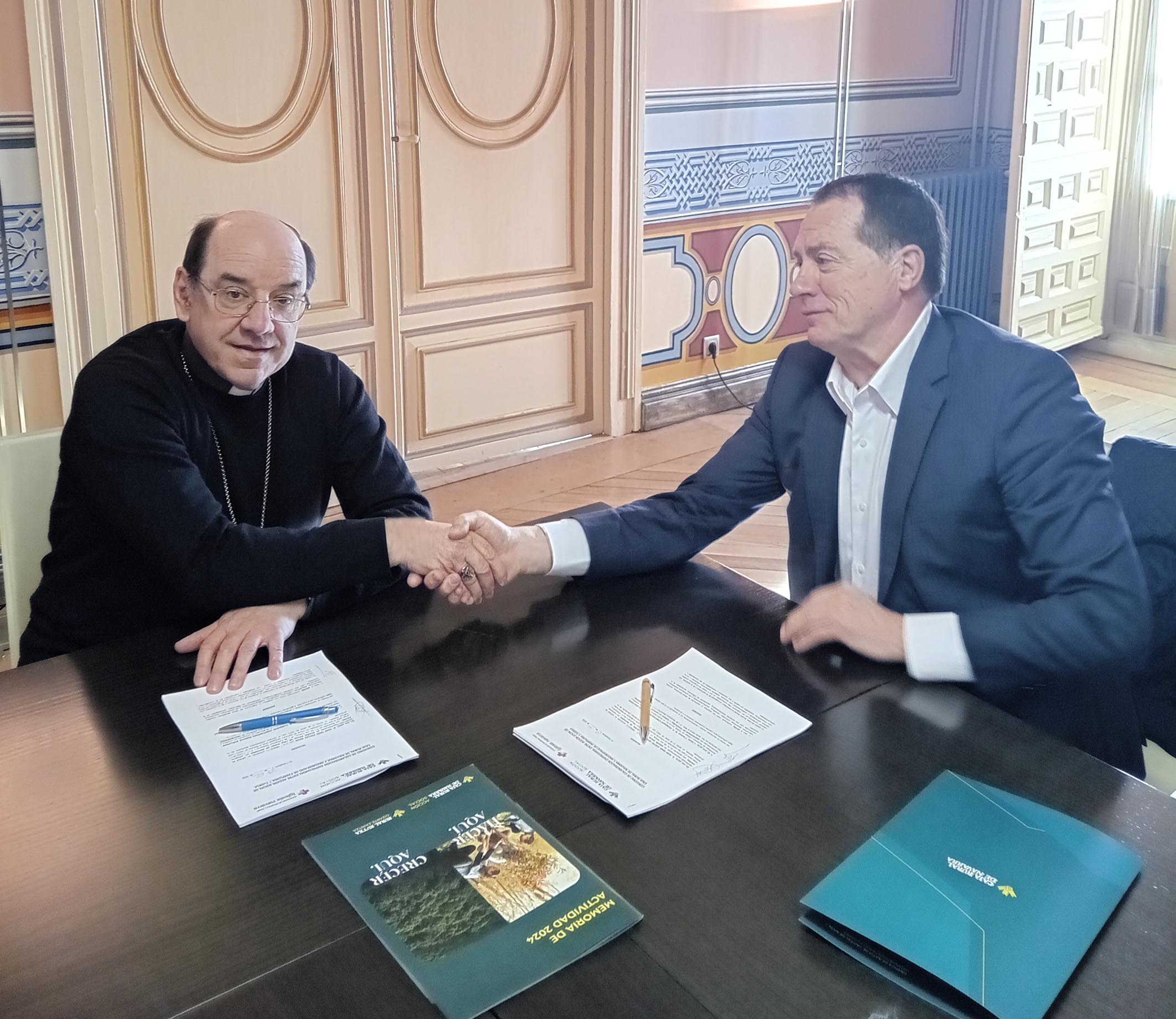 El arzobispo y un representante de la entidad firman un